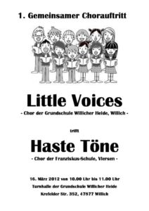 Gemeinsames Singen verbindet! Die Chöre „Little Voices“ – Schule Willicher Heide und „Haste Töne“ Franziskus- Schule haben Kindern und Eltern einen fröhlichen und fulminanten Vormittag bereitet.