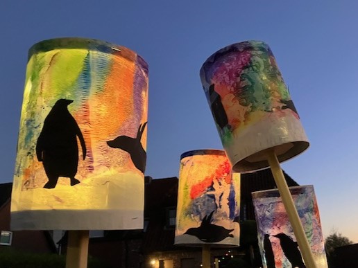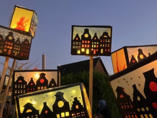 Das Leuchten der Laternen erhellte an dem 17. Novemberabend die Dunkelheit – doch nicht nur die Laternen strahlten: Bunte Lichterketten, liebevoll aufgehängte Laternen aus vergangenen Jahren und viele freudige Gesichter sorgten für eine warme und einladende Atmosphäre. Sie alle begleiteten den St. Martinszug der Grundschule Willicher Heide.